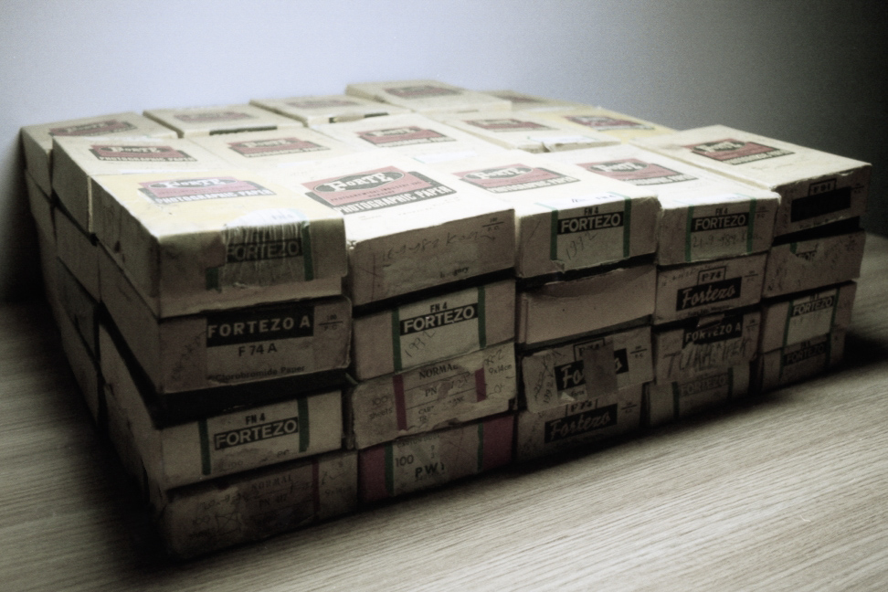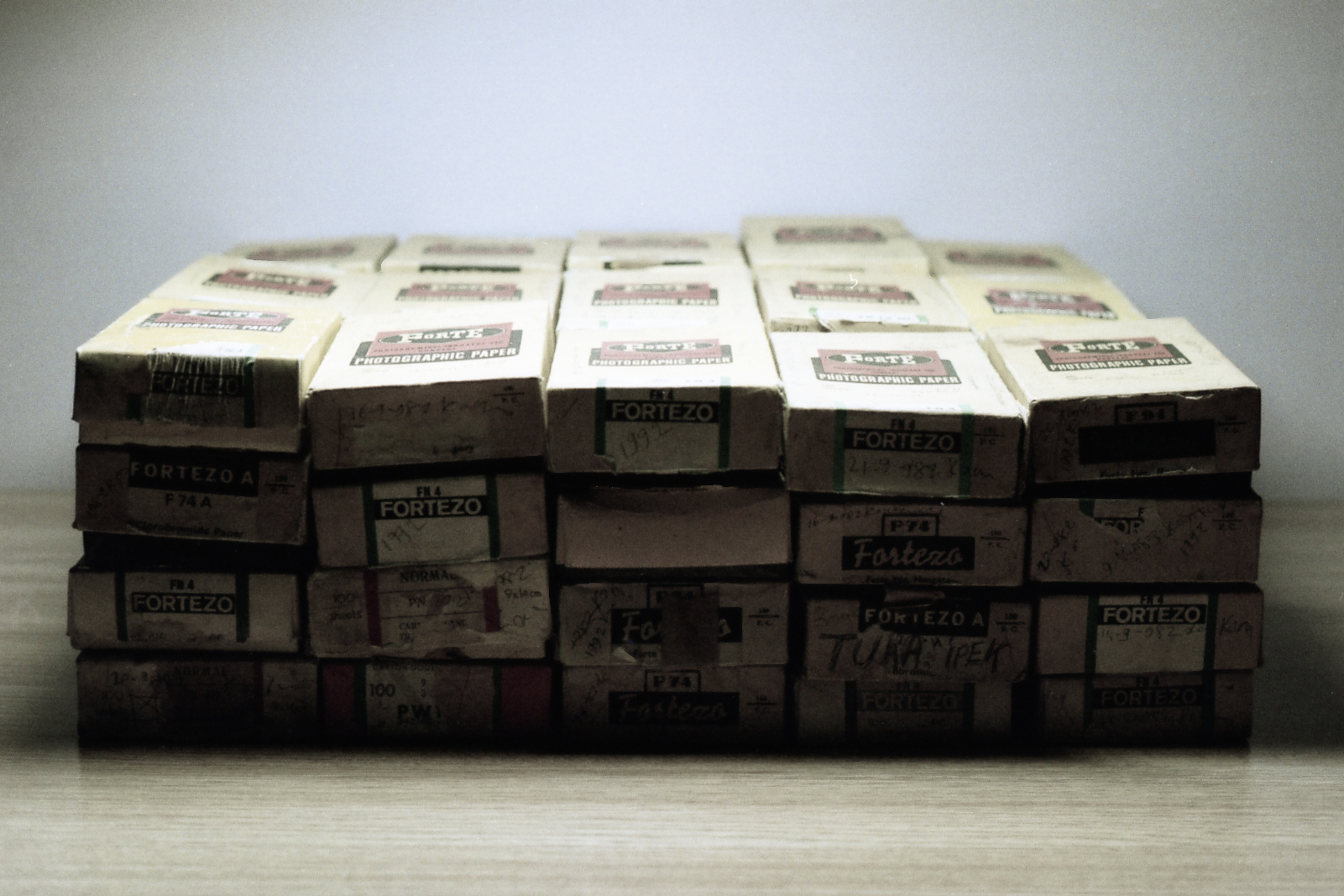 1960’lardan itibaren Macaristan’da üretilen Fortepan FN4 fotoğraf baskı kağıdı kutuları, Foto Coşkun Arşivi’nin özgün depolama sisteminin bir parçasıdır. Baskı fotoğrafların ve negatif filmlerin önemli bir bölümü, Mahmut Coşkun’un bıraktığı özgün düzen korunarak, halen bu kutular içerisinde muhafaza edilmektedir. Kutuların üzerindeki el yazısı tarih ve notlar, içeriğe dair sunduğu bilgilerle bu ambalajları da arşivin tarihsel birer belgesi haline getirmektedir.